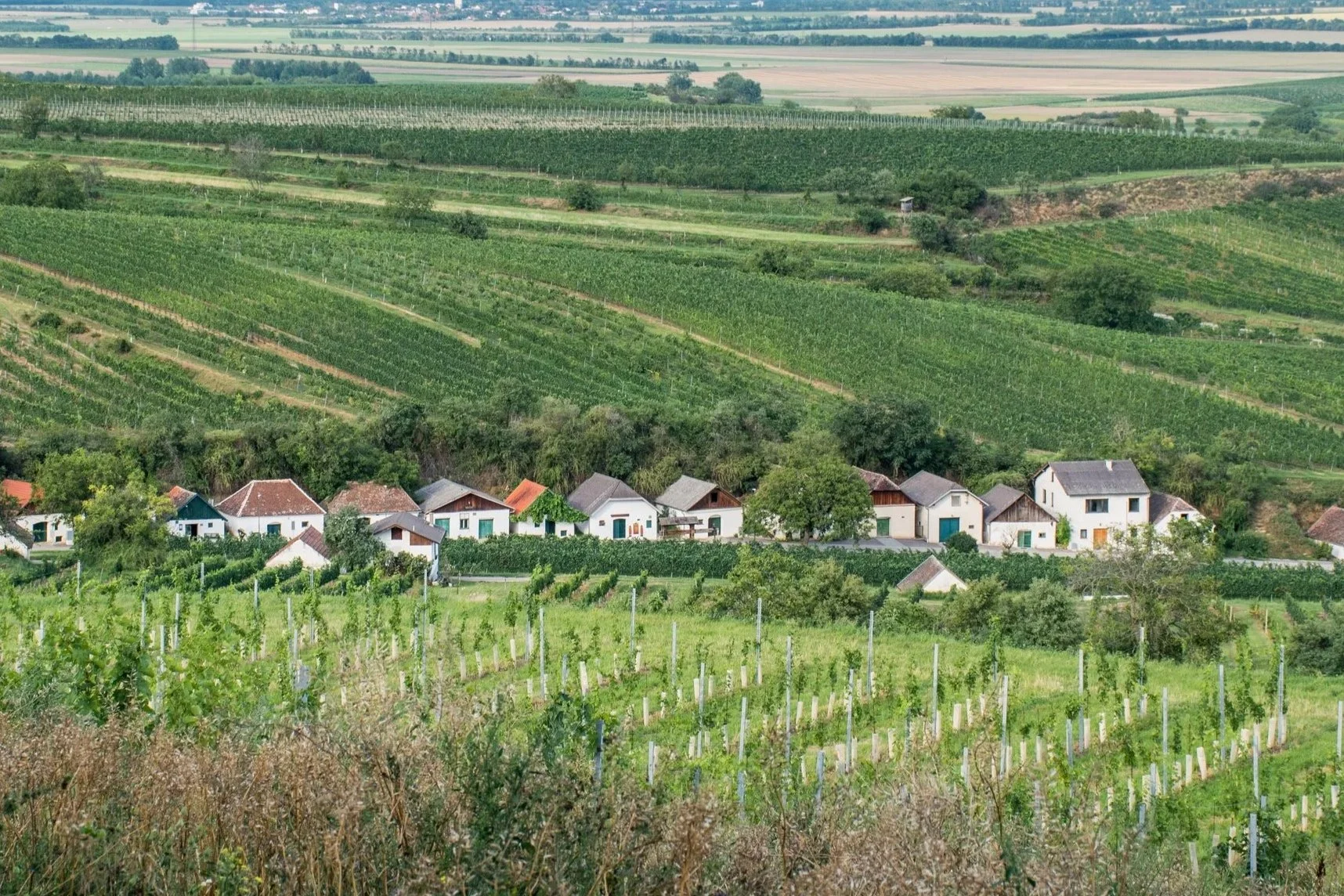 Beim Gemeindeamt rechts vorbei in die Kellergasse Richtung Weingut Fürnkranz und Hagn/Hundschupfn einbiegen.